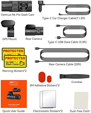 [ Easy to Install & 18-Month Warranty] The Suction Cup Mount (sold separately, ASIN: B0CPS21ZN1) is available to mount the camera on a tilted or vertical windshield. Comes with a strong magnetic mount for easy installation. Support up to a 512GB memory card(ASIN: B09SNRFSS3). If you need a longer rear camera cable (29.5ft), please email Vantrue’s support team to get it. For product questions or technical support, please email our support team and all emails will be answered within 24 hours.